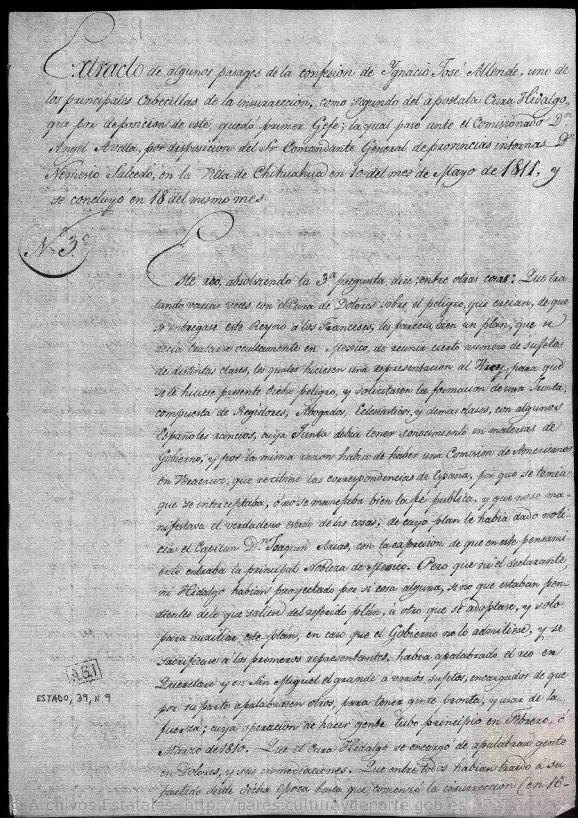 Carta nº 1 reservada de Félix María Calleja, virrey de Nueva España, al ministro de Estado, incluyendo copia de lo que remite al Ministerio de la Guerra sobre el estado de la revolución de aquel país y plan que se propone seguir para el remedio de los mal