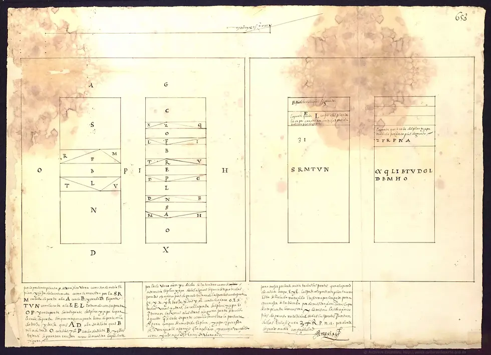 Planta para medir el plan y cepa de la casamata y de los algibes en el baluarte de San Juan de Ulúa