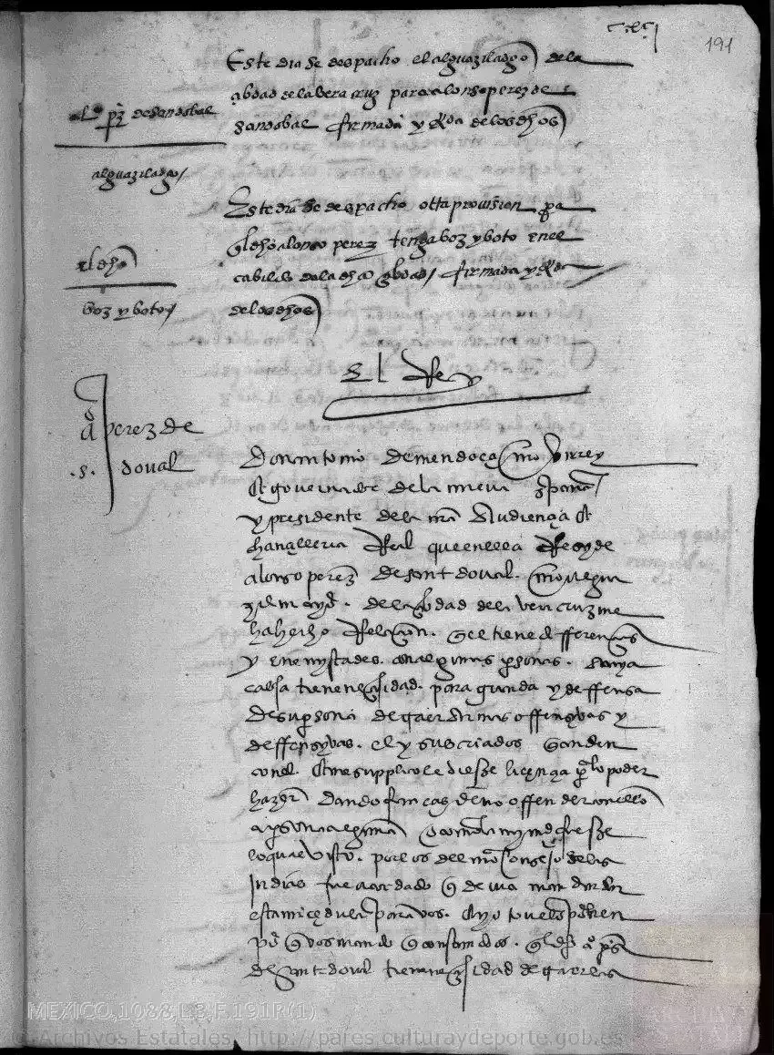 Real cédula a Antonio de Mendoza, virrey de Nueva España: Alonso Pérez de Sandoval, alguacil mayor de la ciudad de la Veracruz, ha hecho relación que tiene diferencias y enemistades con algunas personas por cuya causa tiene necesidad para guarda y defensa