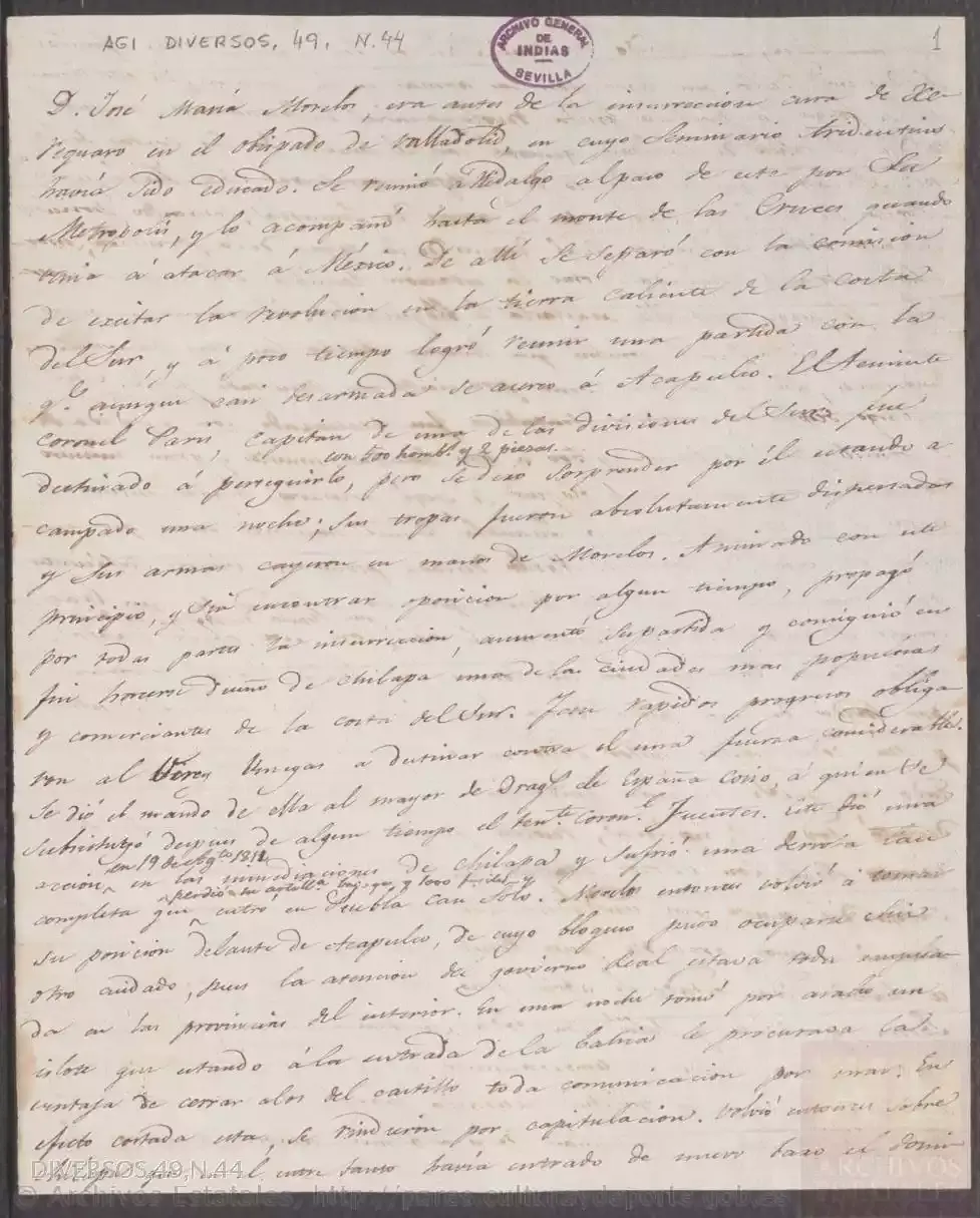 Carta nº 1 reservada de Félix María Calleja, virrey de Nueva España, al ministro de Estado, incluyendo copia de lo que remite al Ministerio de la Guerra sobre el estado de la revolución de aquel país y plan que se propone seguir para el remedio de los mal